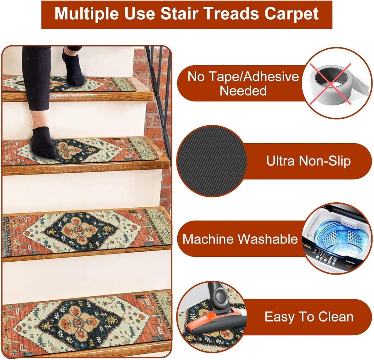 Suitable for any material of staircase, protecting it from wear and tear.