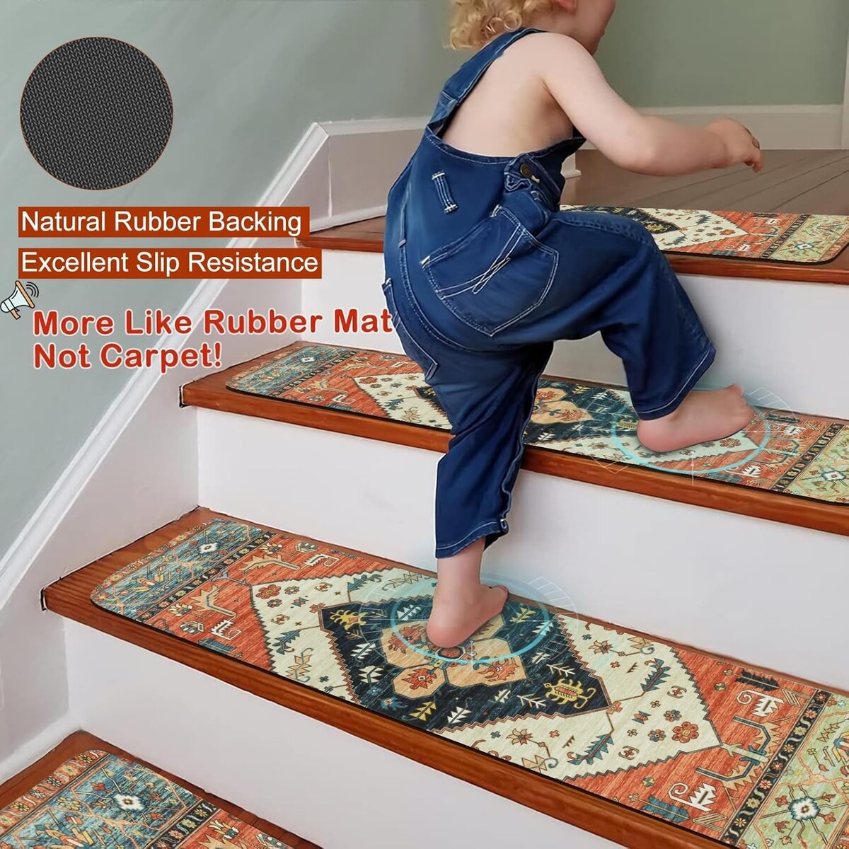 Set of 15 Non-Slip Indoor Stair Treads - Safe for Kids, Pets Elders, 30''X8''