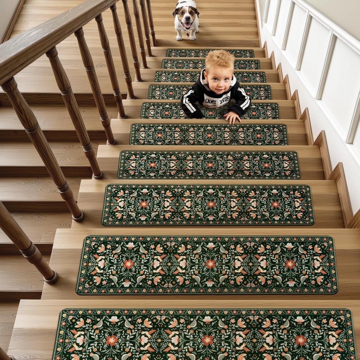 30"x8" Washable Non-Slip Stair Runner - 15PC Floral Protection for Kids & Pets