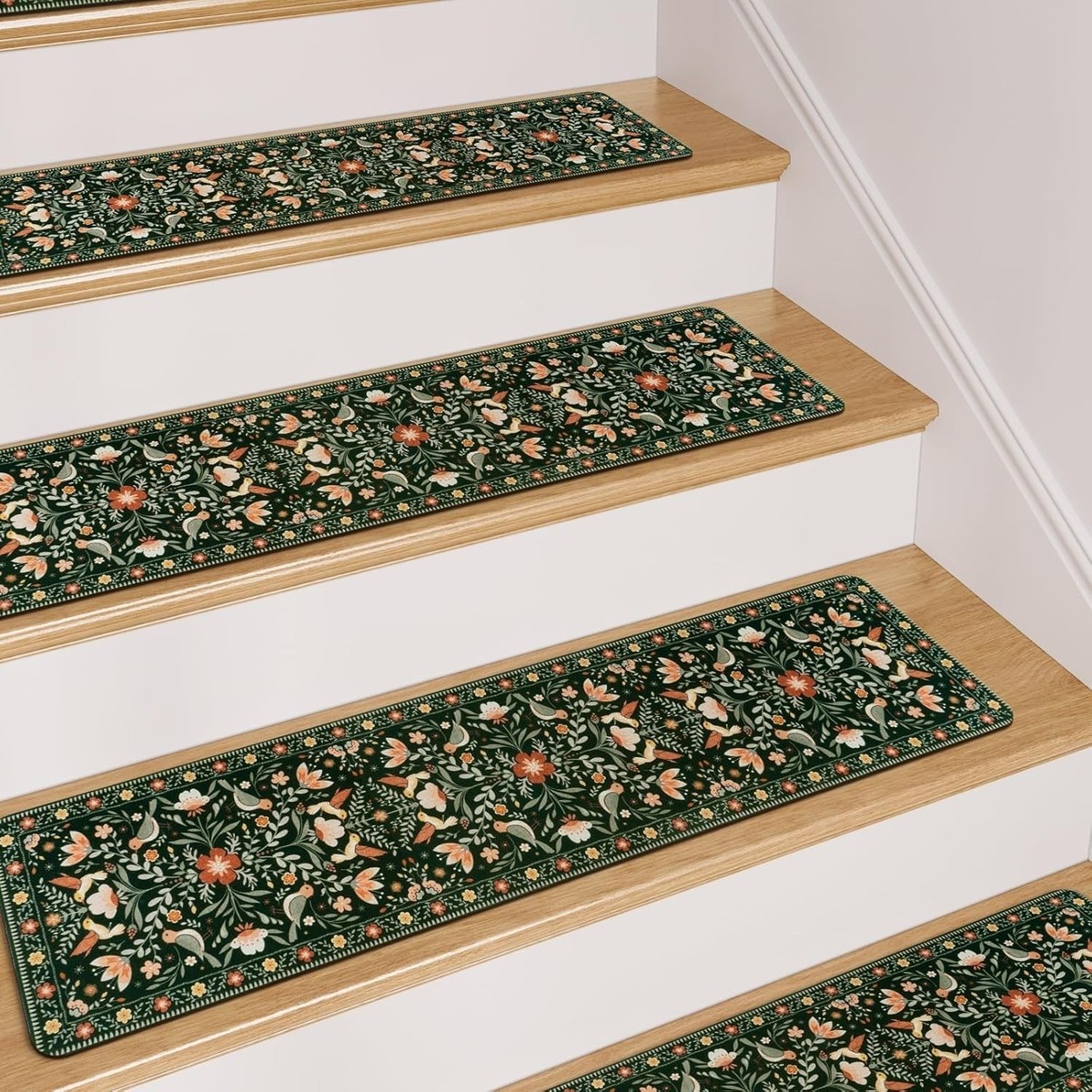 30"x8" Washable Non-Slip Stair Runner - 15PC Floral Protection for Kids Pets