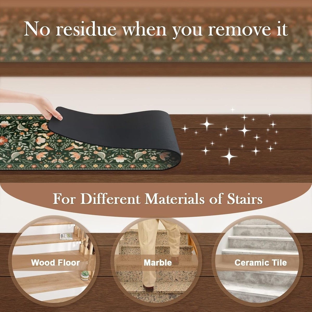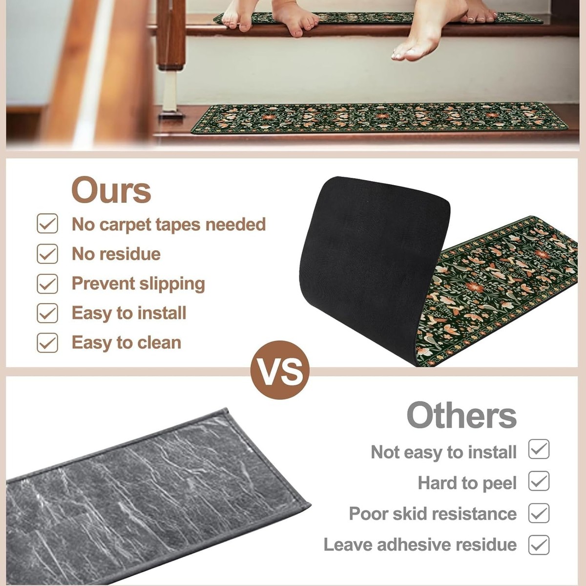 Simple installation?place directly on stairs with no adhesives needed.