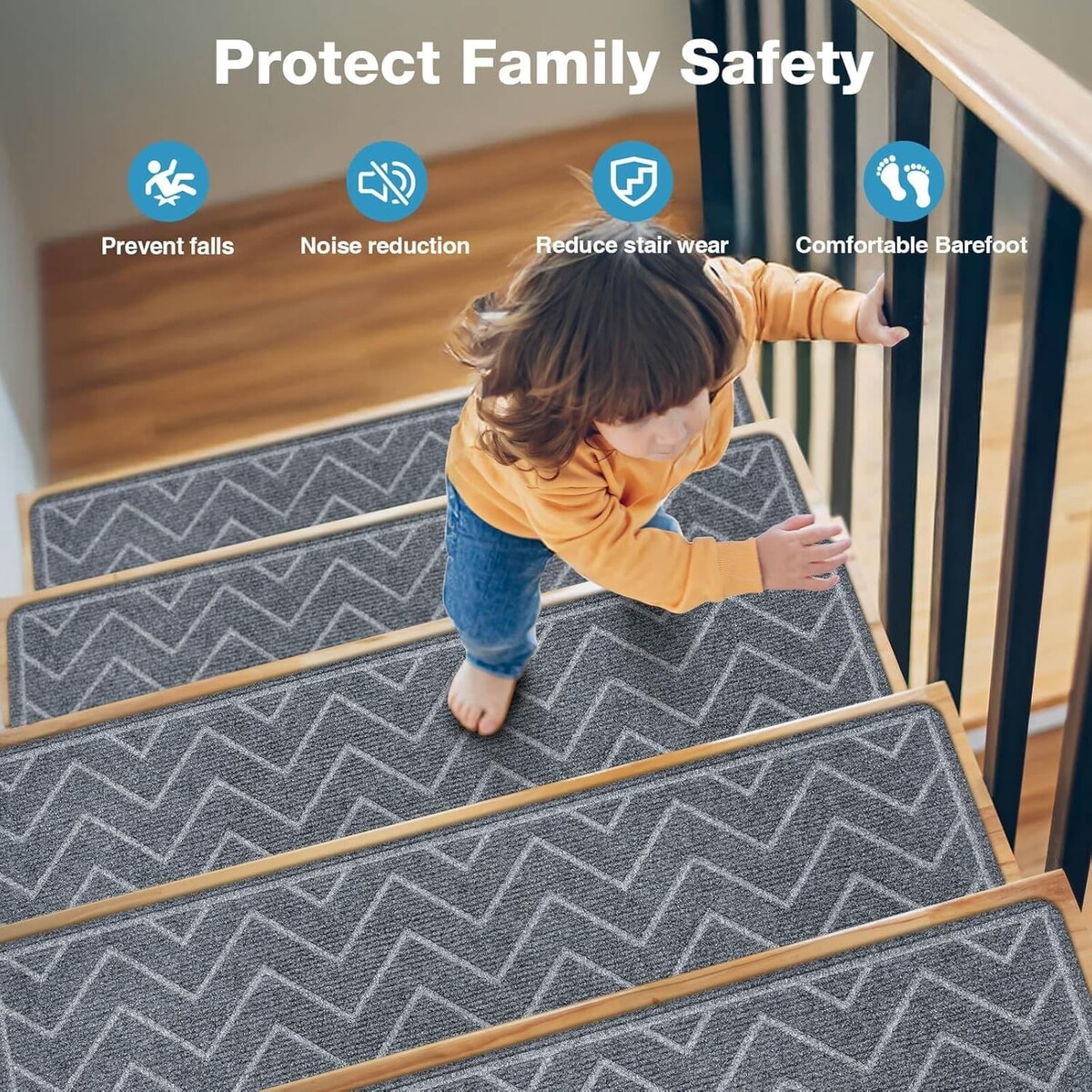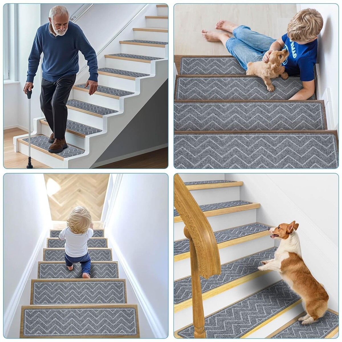 Protect your loved ones while enhancing your home?s aesthetic with our non-slip stair carpet treads. Designed for kids, pets, and anyone who values safety and comfort, these treads provide peace of mind with their advanced adhesive technology and luxurious feel. Stay stylish while ensuring the safety of your family with this 15-pack of elegant stair solutions!