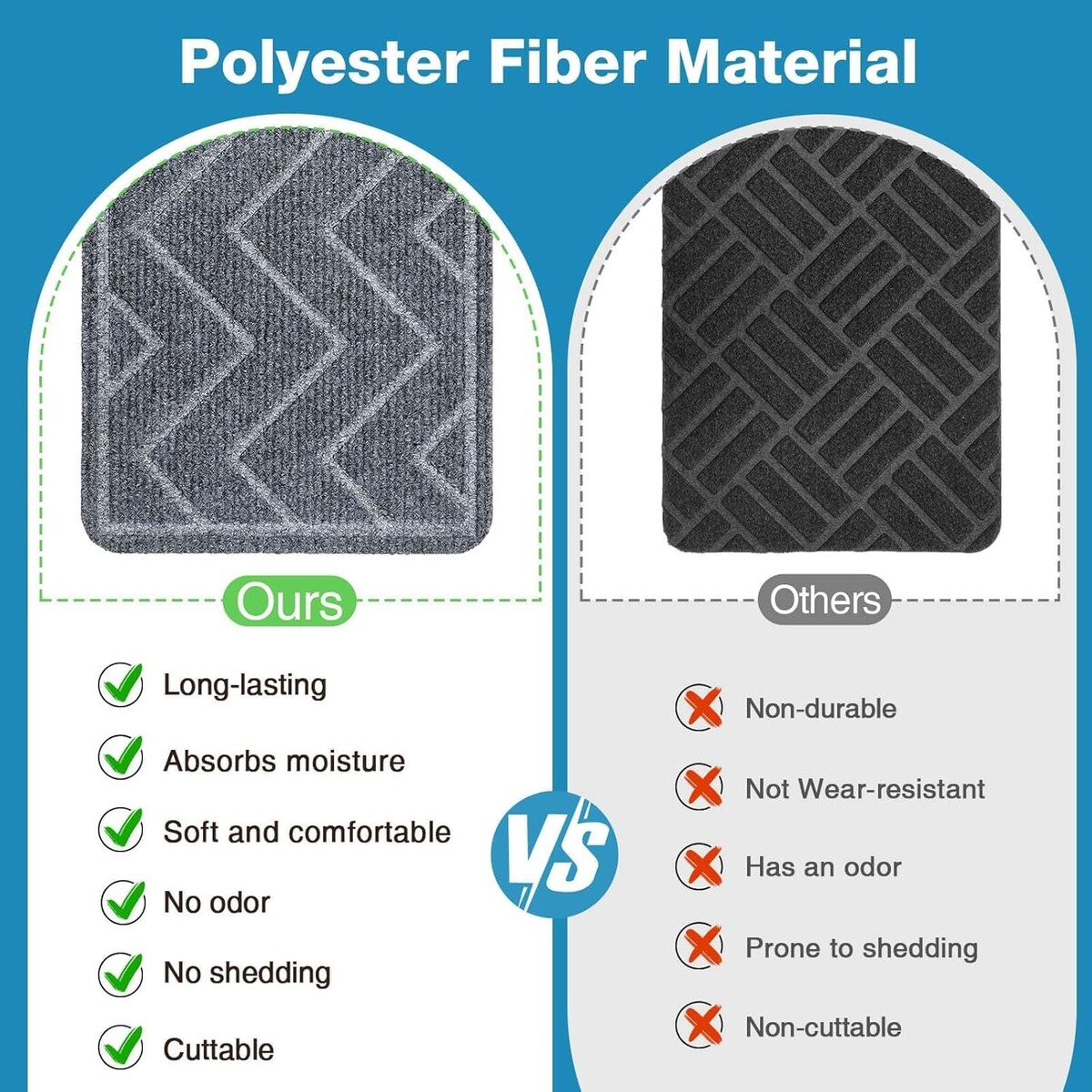 Crafted from wear-resistant polyester fiber with a noise-reducing buffer layer for a soft step and quieter ascents/descents.