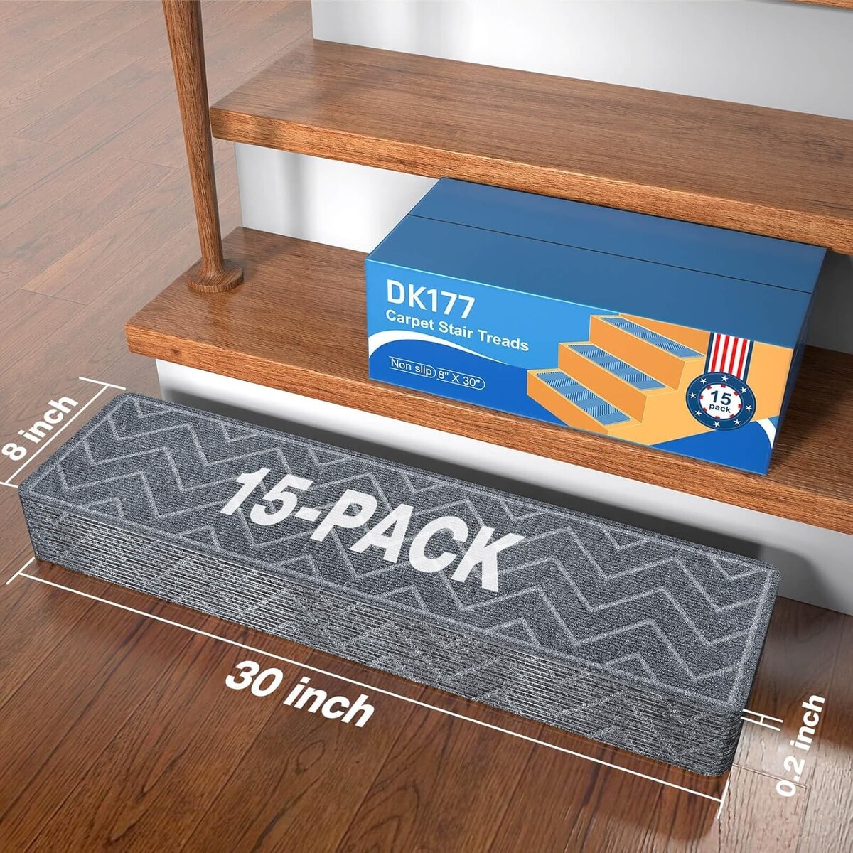 Durable Non-Slip Stair Carpet Treads, 8"x30", Ideal for Kids and Pets - 15 Pack