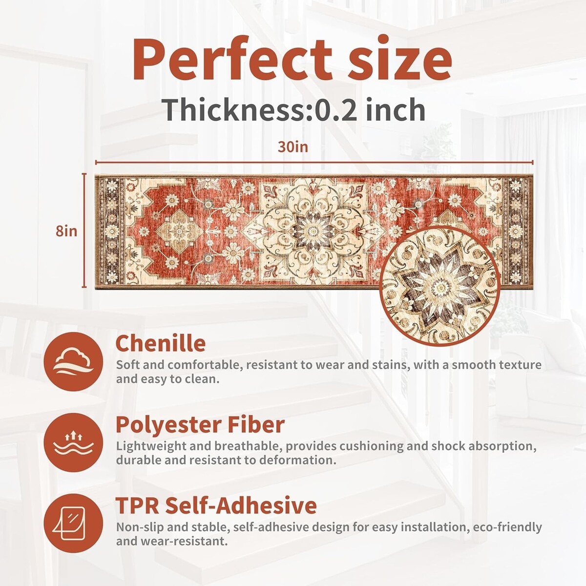 Washable Reusable 8"x30" Non-Slip Stair Treads ? Elegant Velvet Comfort