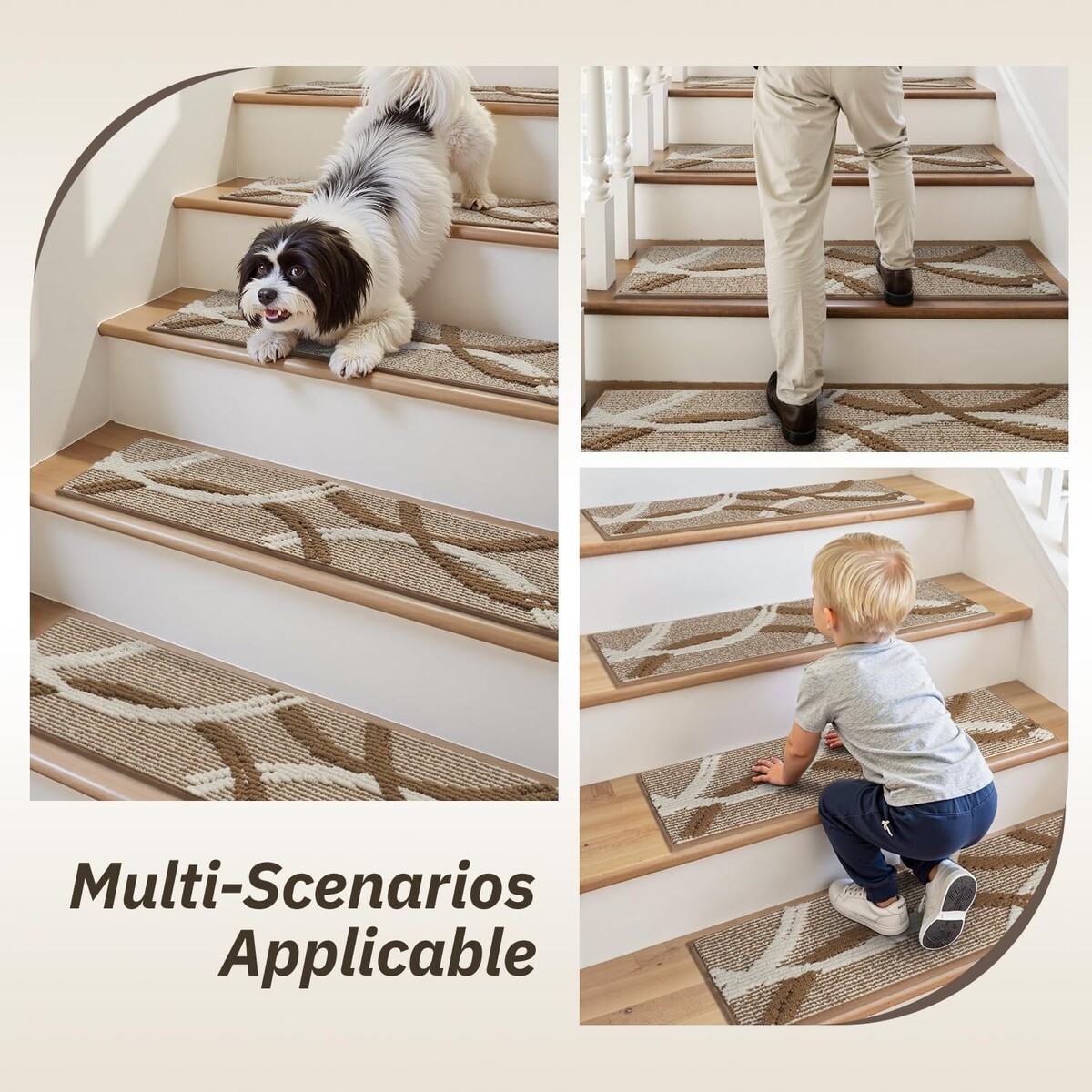 Non-Slip Stair Treads: Ensure safety on your wooden stairs with our advanced design that provides exceptional grip, preventing slips and falls for kids, elders, and pets.