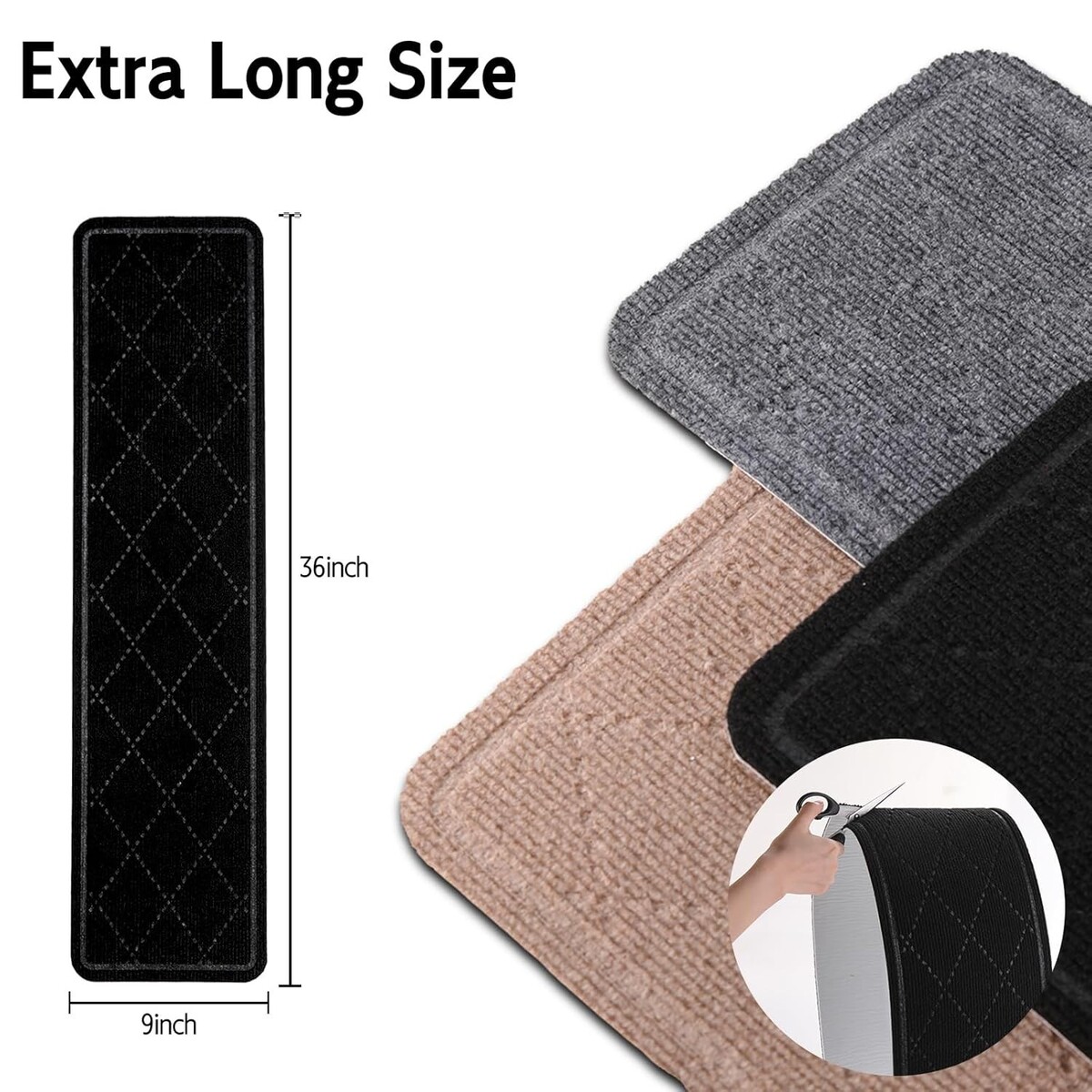 Extra Long and Wide Size: Each stair runner measures 9" x 36" inches, offering wider coverage than other options.