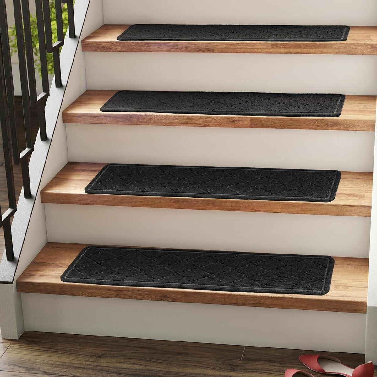 Available in an elegant neutral black, these treads seamlessly integrate with your existing decor while their machine-washable feature allows for easy care?keeping them looking fresh and inviting. Choose quality, safety, and style with our stair treads today!