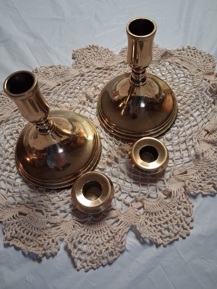 Vintage Indiana Brass Heavy Candlesticks Removeable Drip Pan