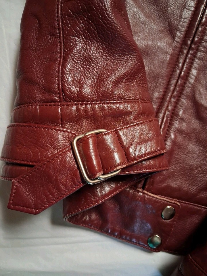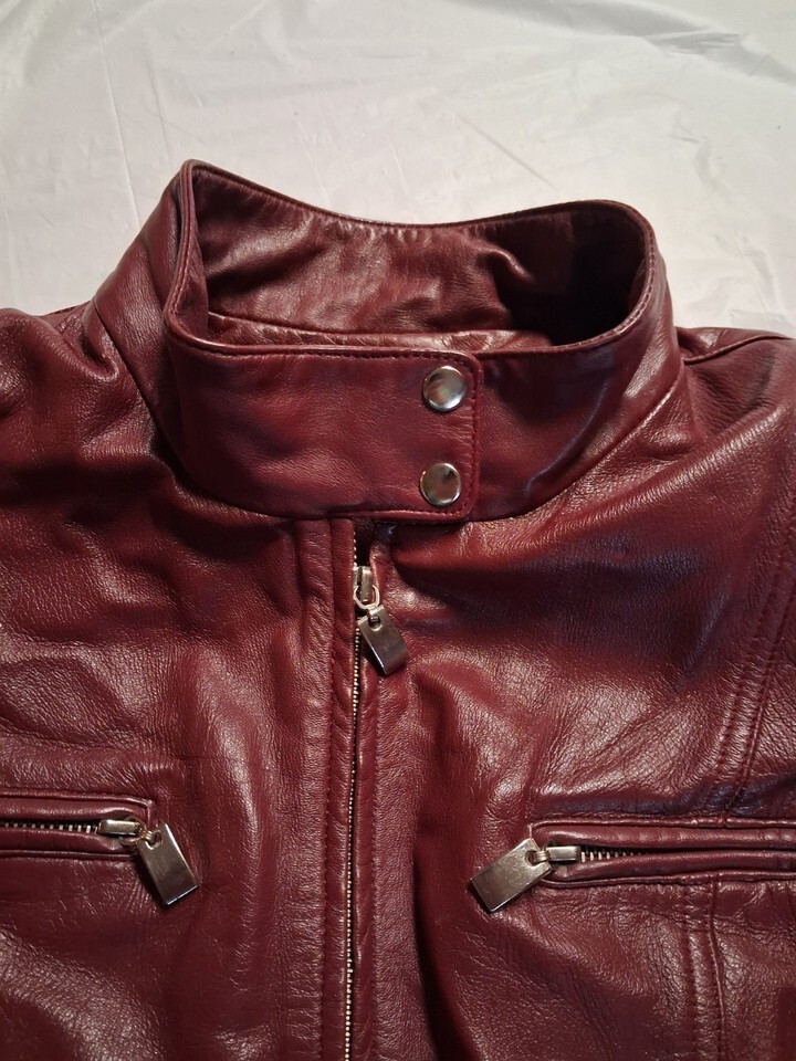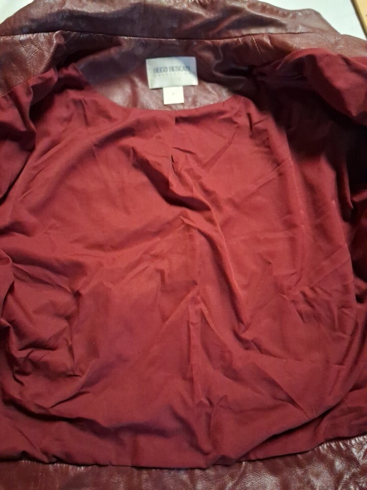 Vintage Hugo Buscati Womens M Burgundy 100% Leather Jacket