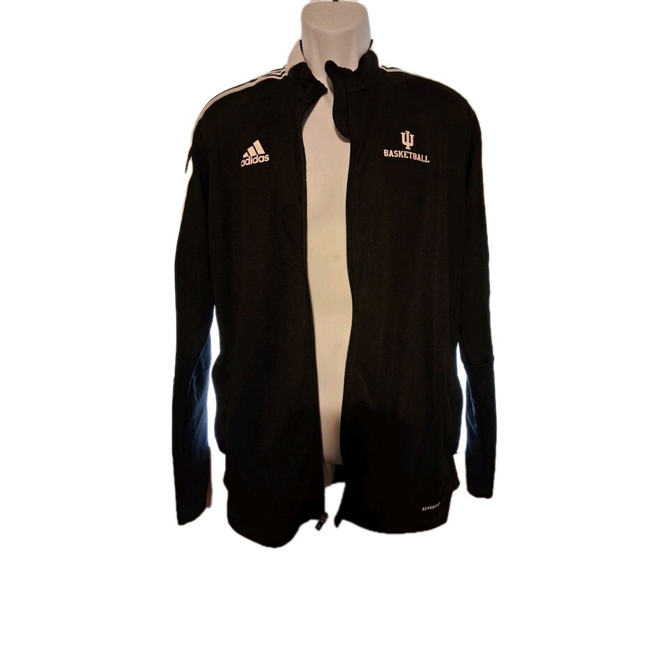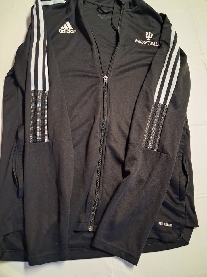 Men's Large IU Basketball Black Adidas Warm Up Jacket White Stripes