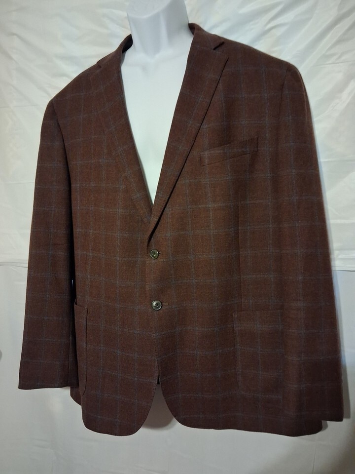 Jos. A Bank 1905 Collection Blazer 48R Brown Windowpane Wool Stretch Tailored