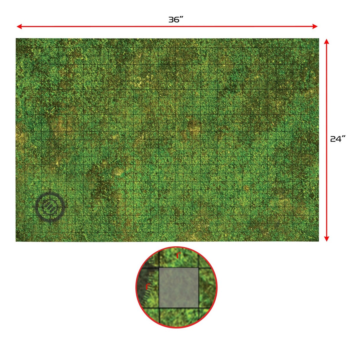 Enhanced Gaming Grass Terrain Tabletop RPG 24" x 36" Dry Erase 1" Grid Mat