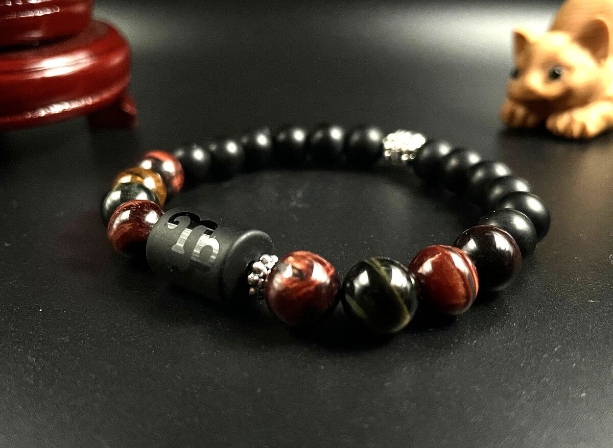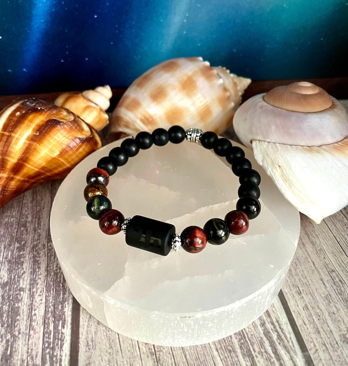 Capricorn Energy Gemstone Bracelet, Tricolor Tiger Eye & Matte Black Beads