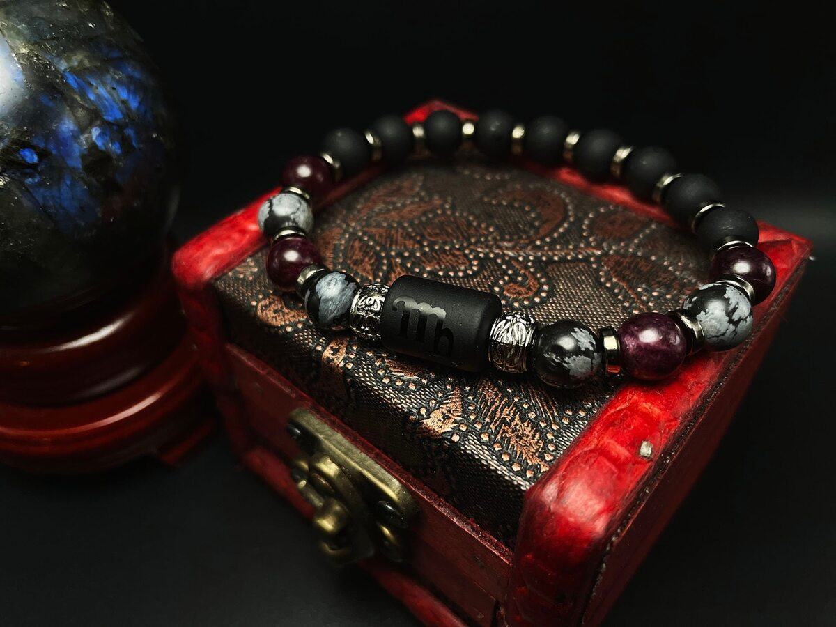Virgo Gemstone Bracelet: Red Garnet, Snowflake Obsidian, Black Pearl