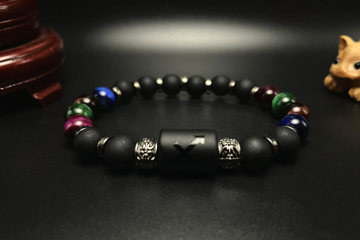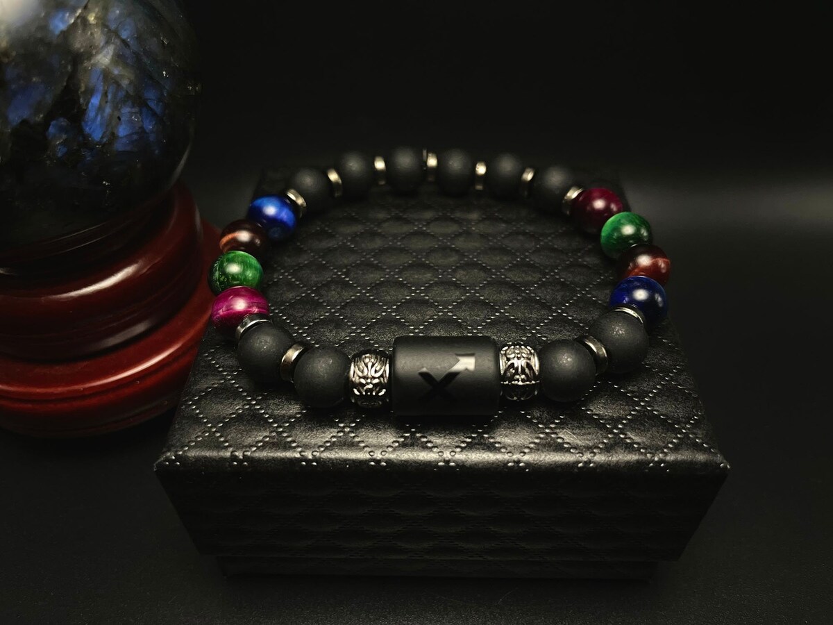 The combination of Multicolored Tiger Eye and Matte Black Pearl beads is truly striking, with the subtle shimmer of the tiger eye beads contrasting beautifully with the matte finish of the black pearl beads. Gunmetal spacers add a touch of sophistication and elegance to the design, creating a bracelet that is both visually striking and thoughtfully crafted. Whether you're a born Sagittarian or simply drawn to the adventurous energy of this zodiac sign, the Sagittarius Zeal Gemstone Beaded Bracelet is sure to inspire you to live life to the fullest.
