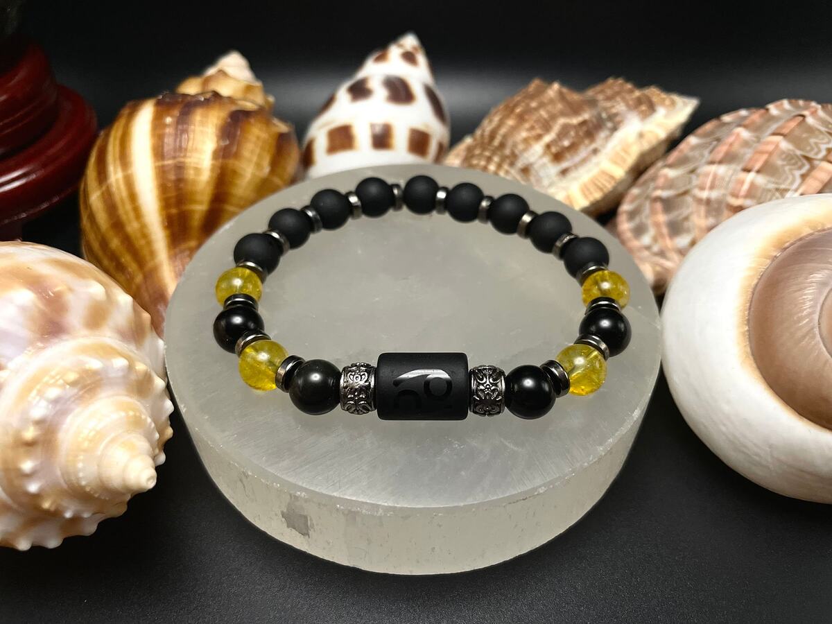 The Cancer Spirit Gemstone Beaded Bracelet features a unique combination of citrine, black obsidian, matte black pearl, and gunmetal spacers that work together to balance and align the energies of the wearer. Citrine is a powerful stone that promotes joy, positivity, and manifestation, while black obsidian helps to clear emotional blockages and promote spiritual growth. Matte black pearl adds a sense of calm and clarity, and gunmetal spacers provide a sleek and modern look. Together, these stones create a powerful and supportive combination that can help Cancers tap into their creative potential and nurture their relationships with others.