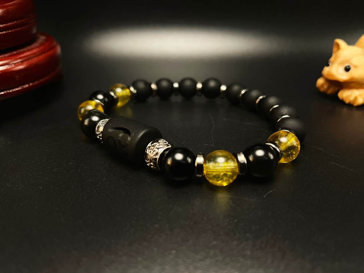 Cancer Spirit Gemstone Bracelet, Citrine, Black Obsidian, Matte Black Beads