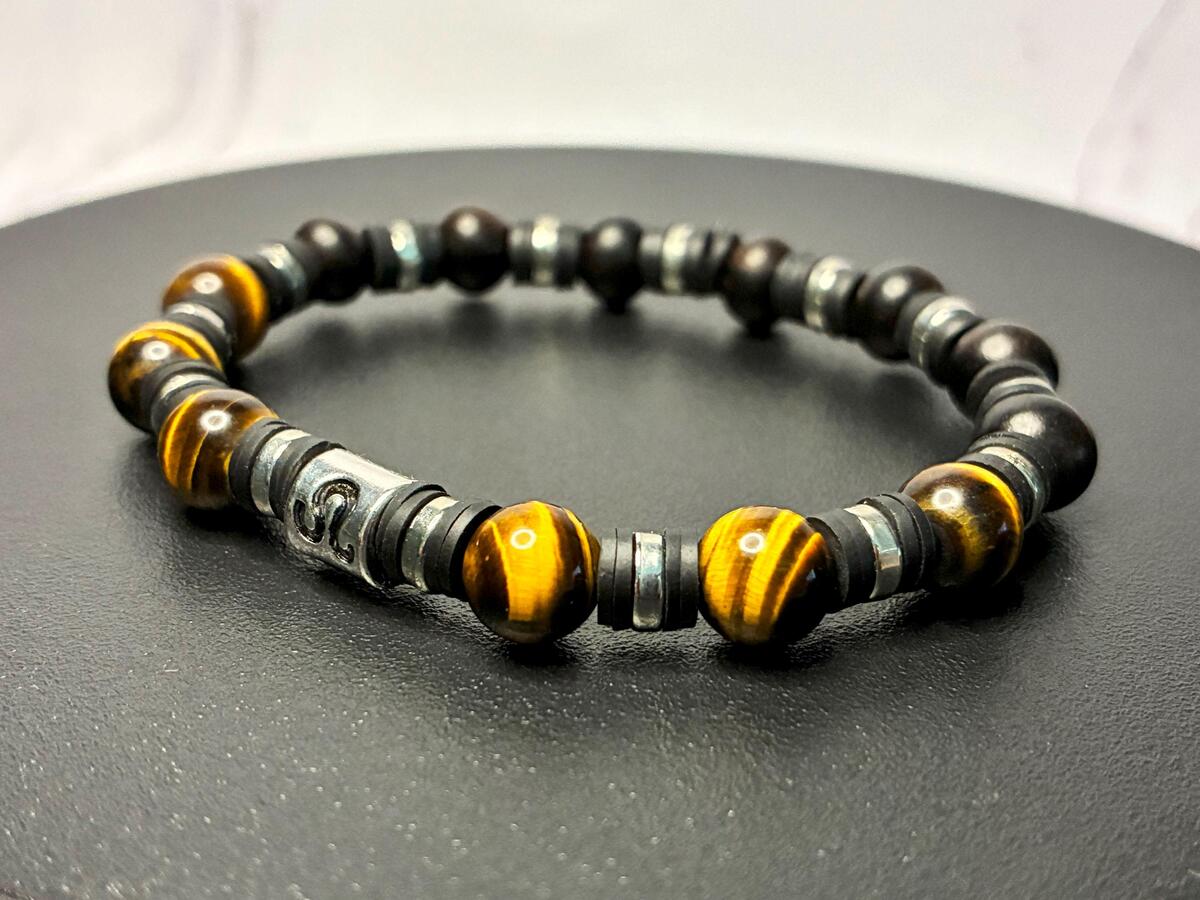 Leo Zodiac Bracelet with Tiger Eye Gemstone and Dark Wood beads (Stretch, 8mm be