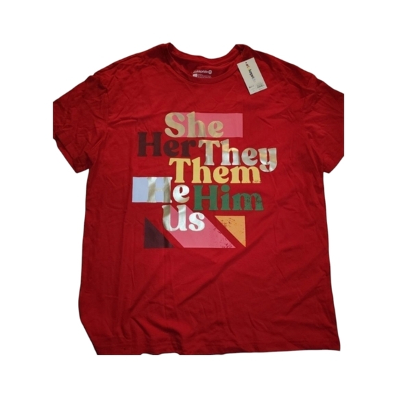 NWT Pronouns SS Crewneck Red T-Shirt- LGBTQIA + Pride Coll - L, XL or 2XL