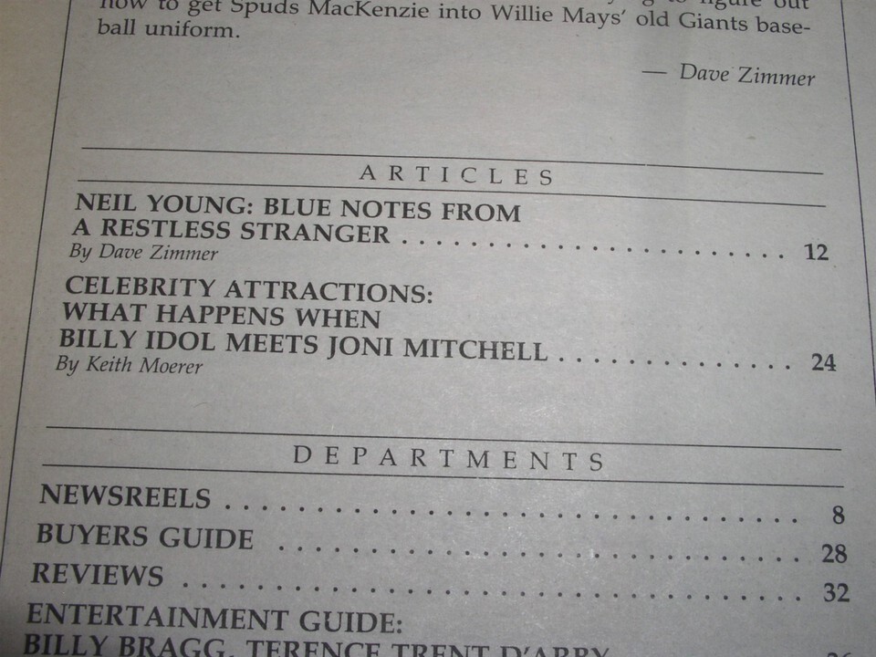 Neil Young BAM Magazine Vintage 1988 Billy Idol Joni Mitchell Guitar BuyersGuide