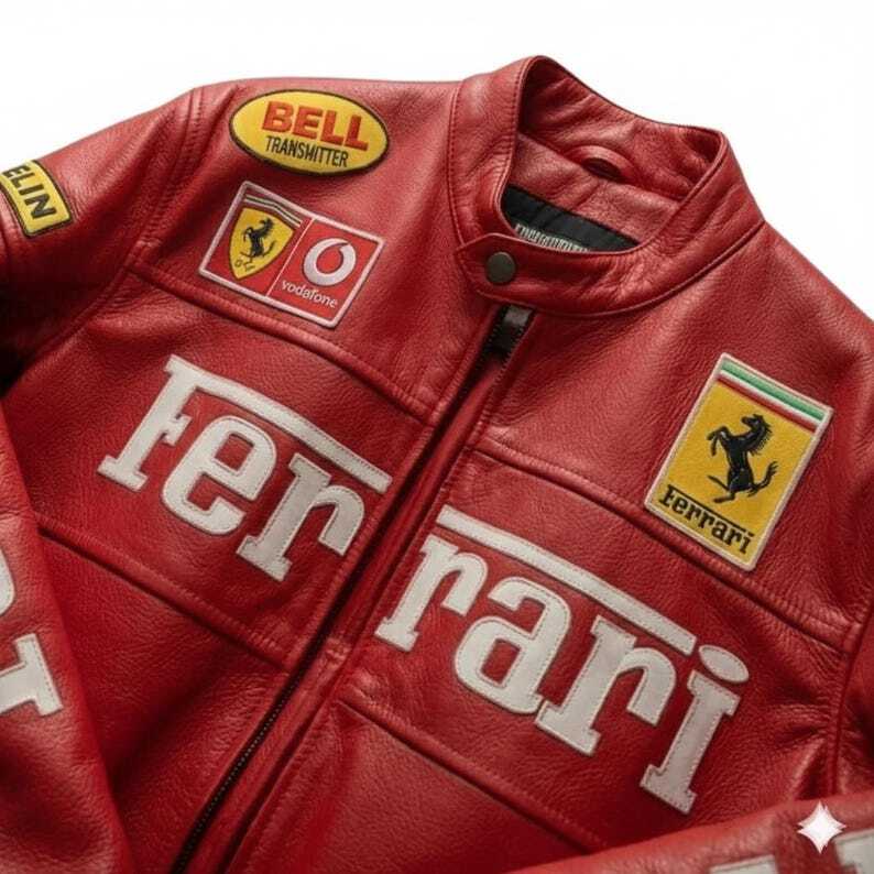 Rev up your style with this Red Ferrari Leather Racing Jacket, inspired by classic MotoGP and Formula racing culture. Designed for motorcycle enthusiasts and streetwear lovers, this premium biker jacket delivers a bold motorsport look while offering comfort and durability.