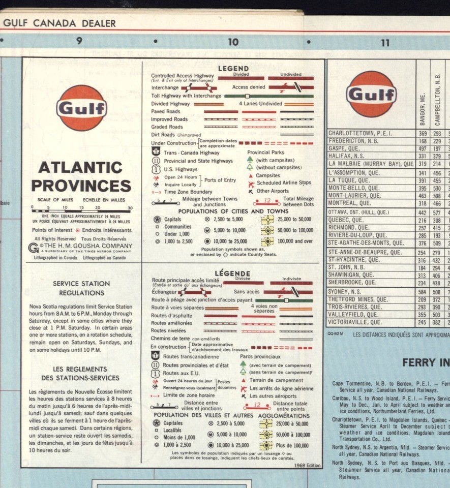 as Found * 1969 edition GULF OIL CANADA travel map ATLANTIC PROVINCES car front