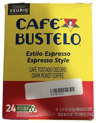 Contains 1 box of 24 Cafe Bustelo Espresso-Style Dark Roast K-Cup coffee pods (24 count total)