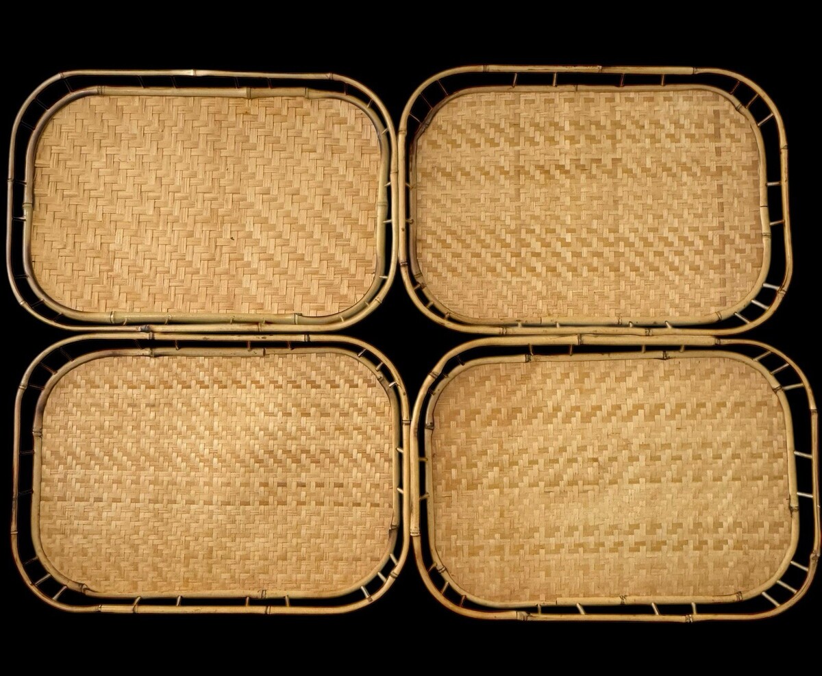 Vintage Bamboo Rattan Serving Tray Set 8 and 50 similar items