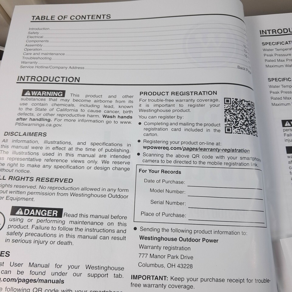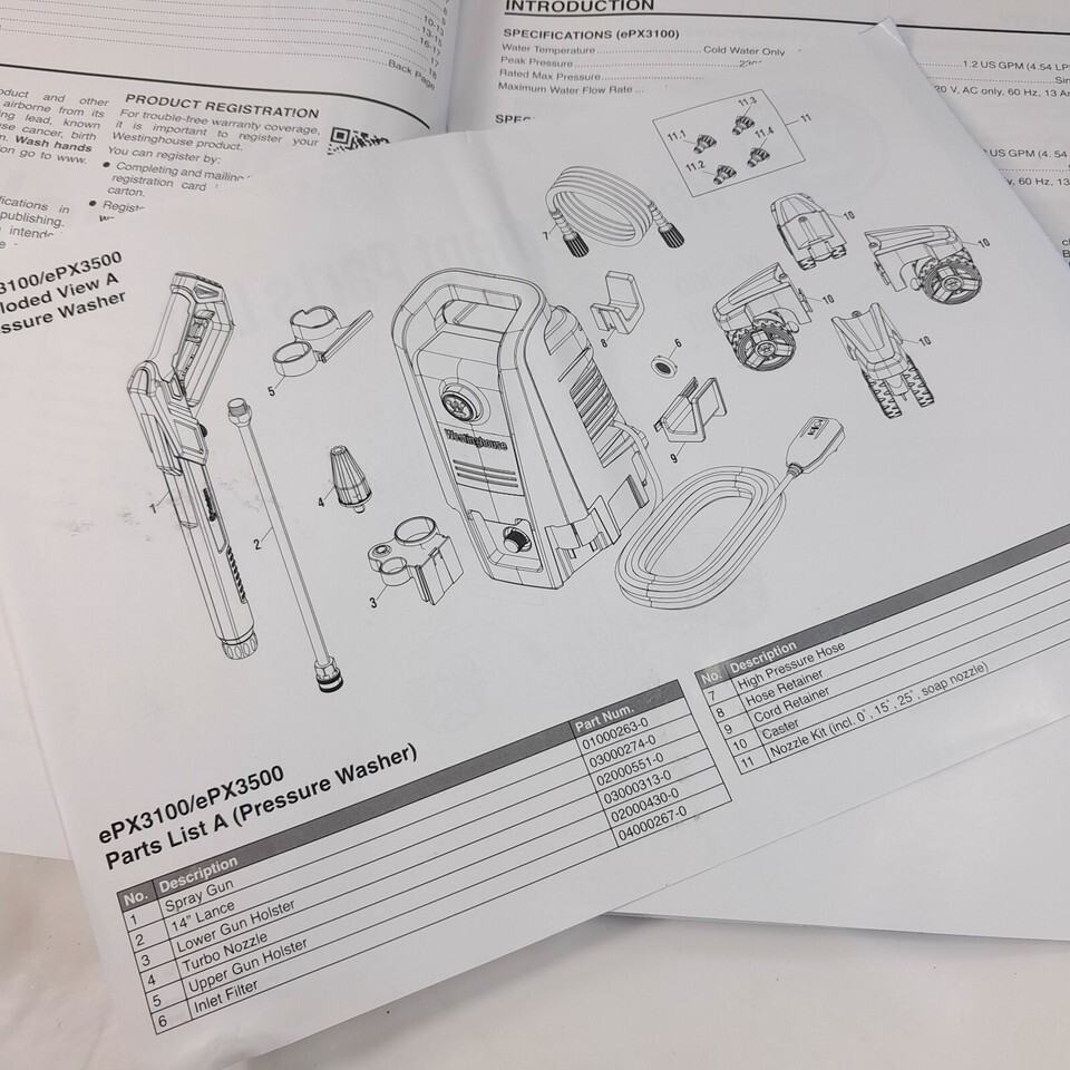 Westinghouse ePX3100 ePX3500 Electric Pressure Washer User Manual instructions