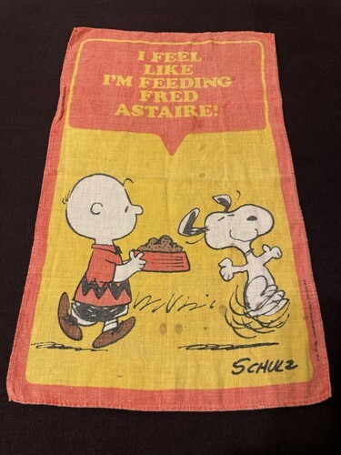 Vintage Snoopy Peanuts hand towel fringe on dog house Mornings Tastemakers 1971