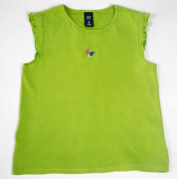 These are absolutely adorable girls top from Gap Kids in a Child Size Medium (8). This green top has a rhinestone accented butterfly on the front. Ruffles on the ends of the cap sleeves add another feminine touch. 100% Cotton. Machine washable. It measures approx 17 inches from the top of the shoulder to the bottom. Measuring across the front, under the arms, is approx 14.5 inches, laid flat. So cute!