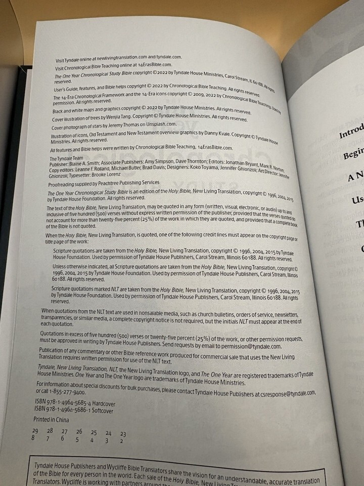 One Year Chronological Study Bible NLT Hardcover Tyndale Slipcase