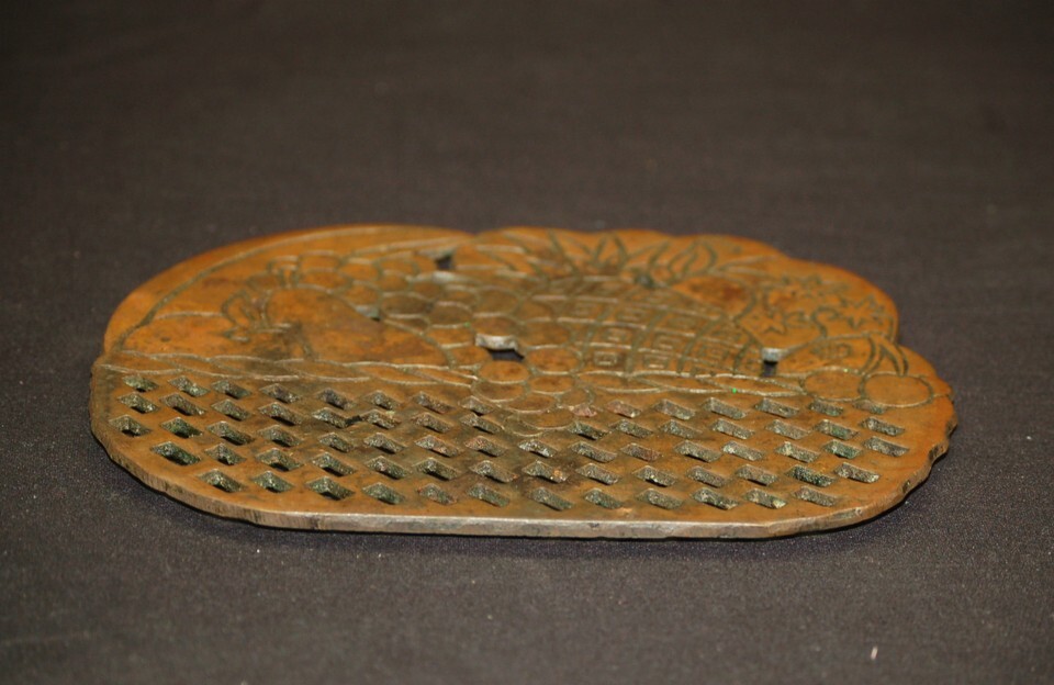 Himark Cast Iron Metal Trivet Copper Tone Fruit Basket Wall Hanger Vintage 1983
