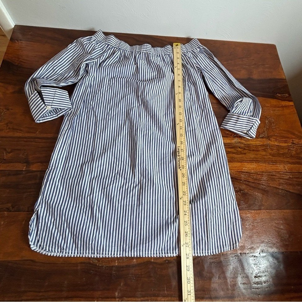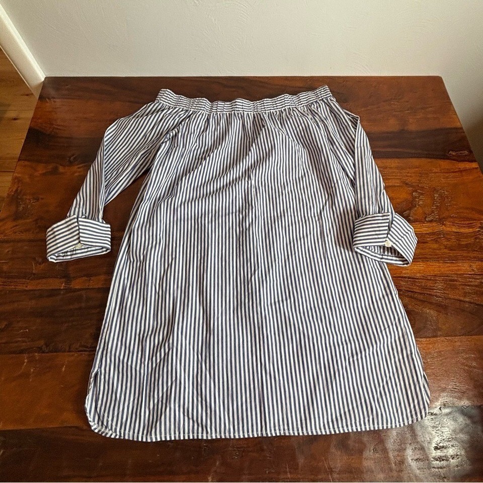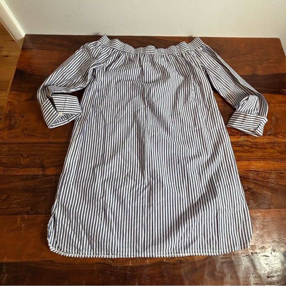 Haute Monde Blue White Striped Off the Shoulder Shift Dress Medium Long Sleeve