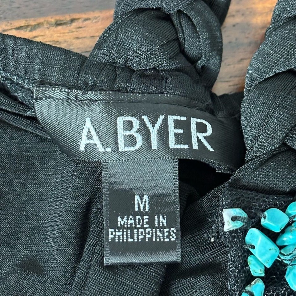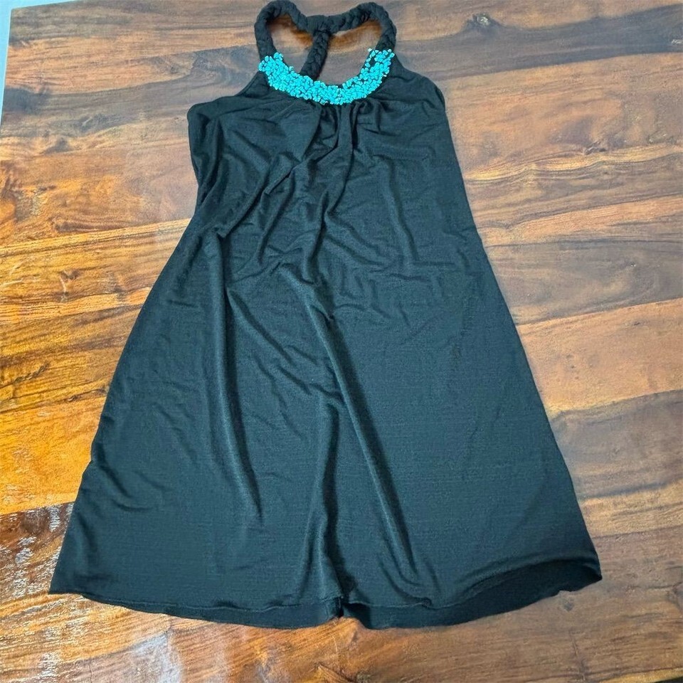 Women's Black Halter Dress M Knee Length Beaded Neckline