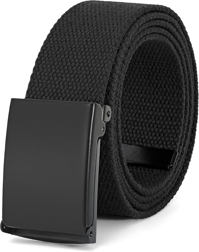 NEW MILITARY BLACK WEB BELT W/ BLACK BUCKLE & TIP ADJUSTABLE UP TO 65 INCHES