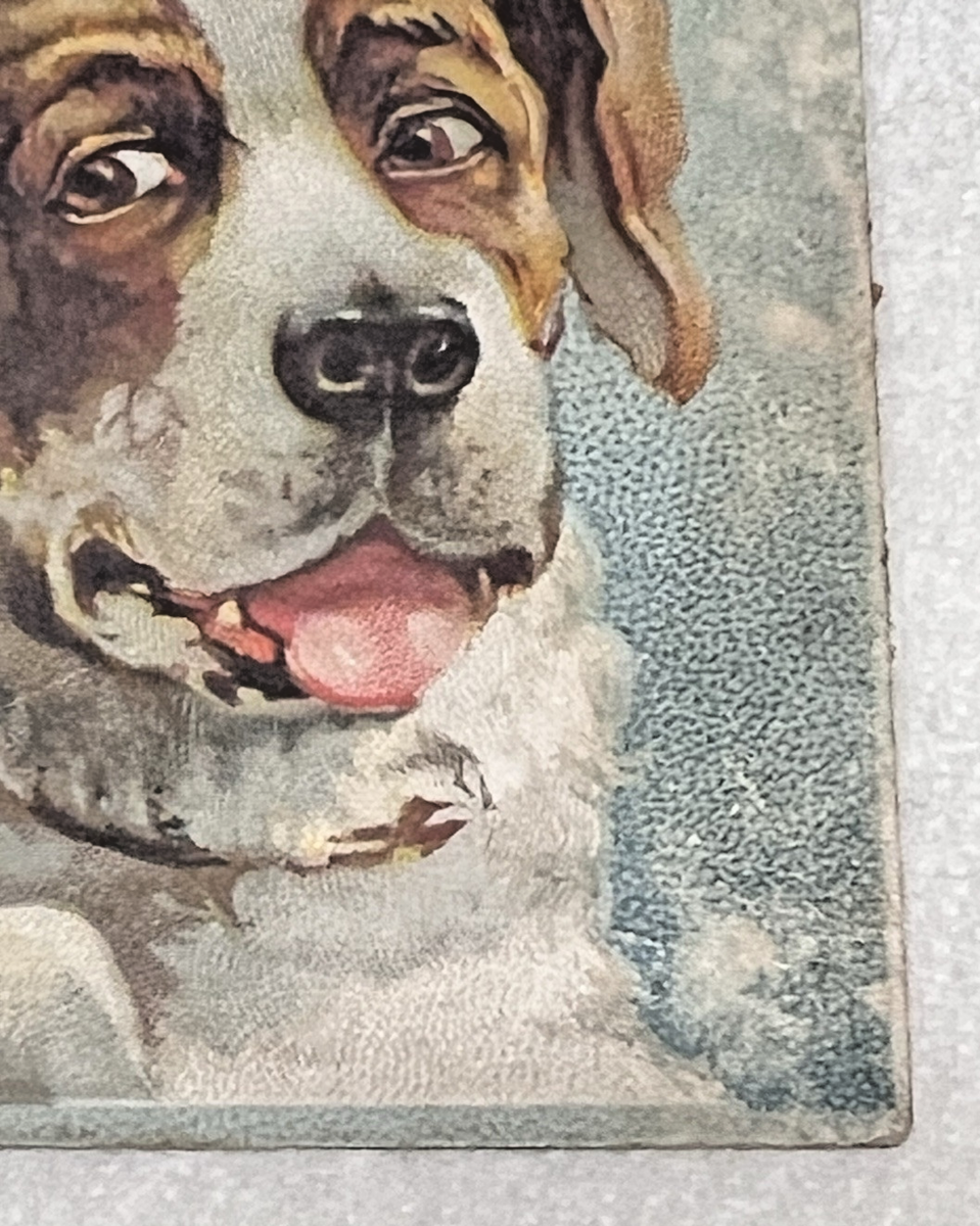 1880's Willimantic Sewing Machine Thread Trade Card Girl Boy w Saint Bernard Dog