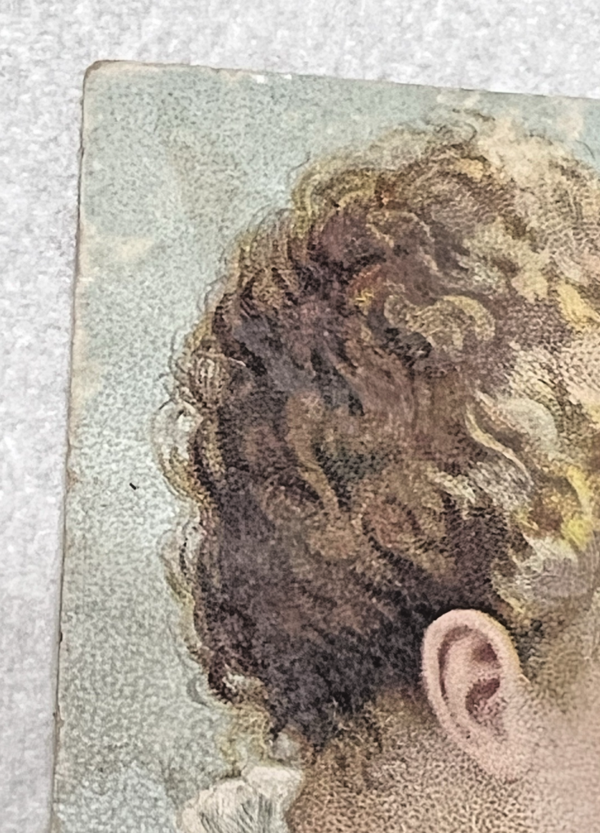 1880's Willimantic Sewing Machine Thread Trade Card Girl Boy w Saint Bernard Dog It has surface wear that can been seen under a magnifier edges have tiny marks also back has pencil writing just shy of 4 1/4 x 3 inches