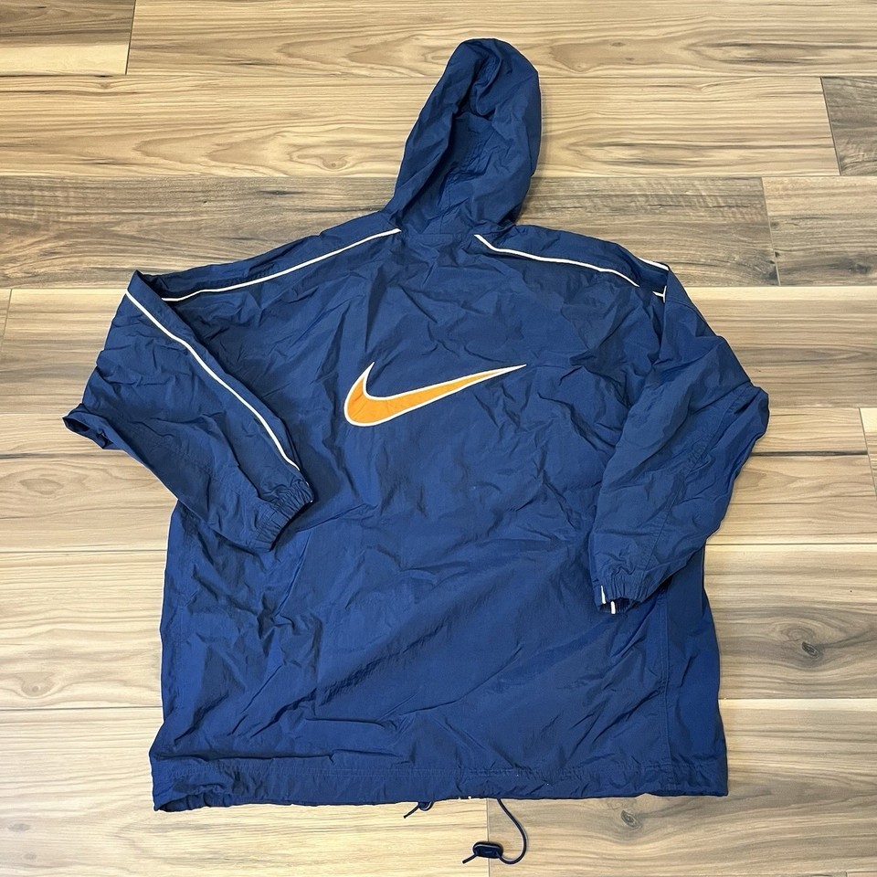 Vintage 90s Nike Windbreaker Jacket Men L Big Swoosh Navy Blue Orange Nylon