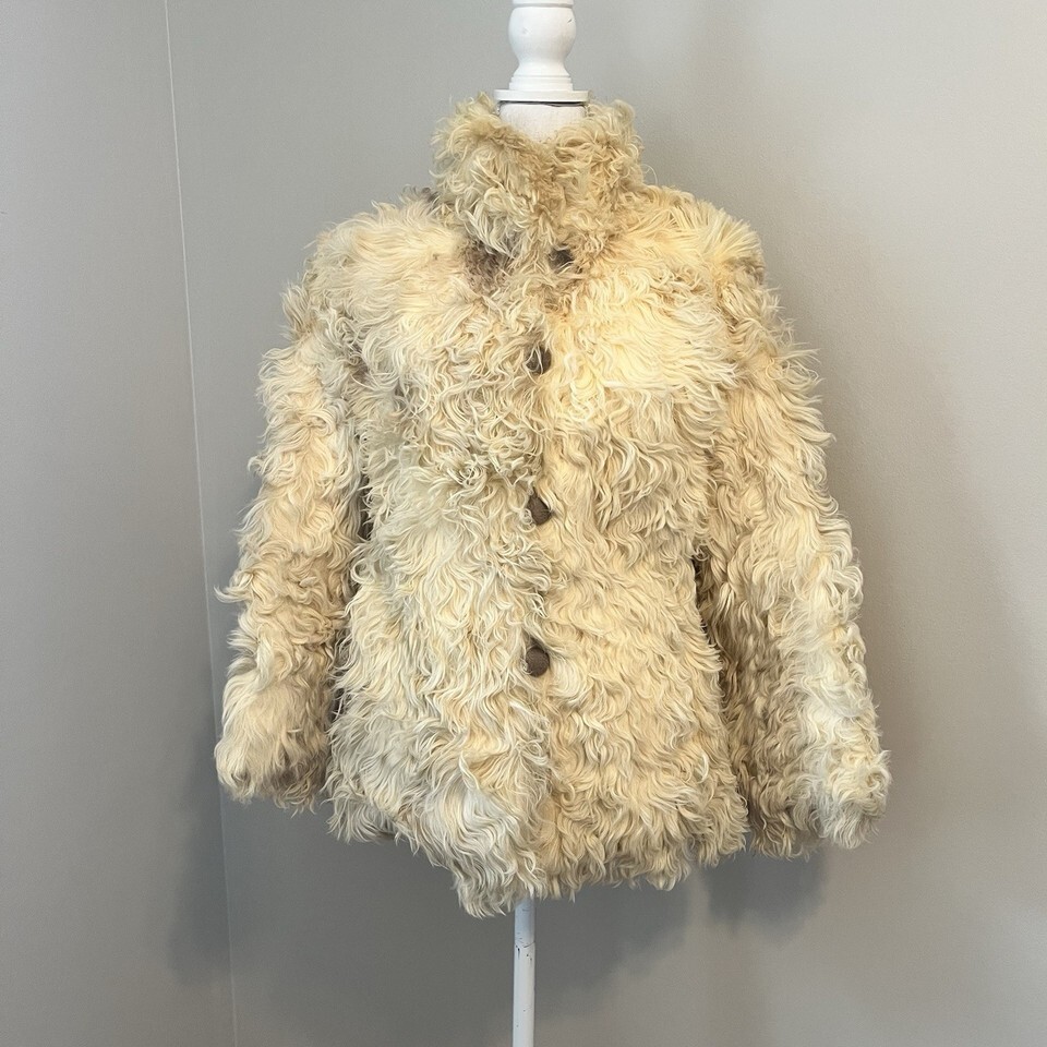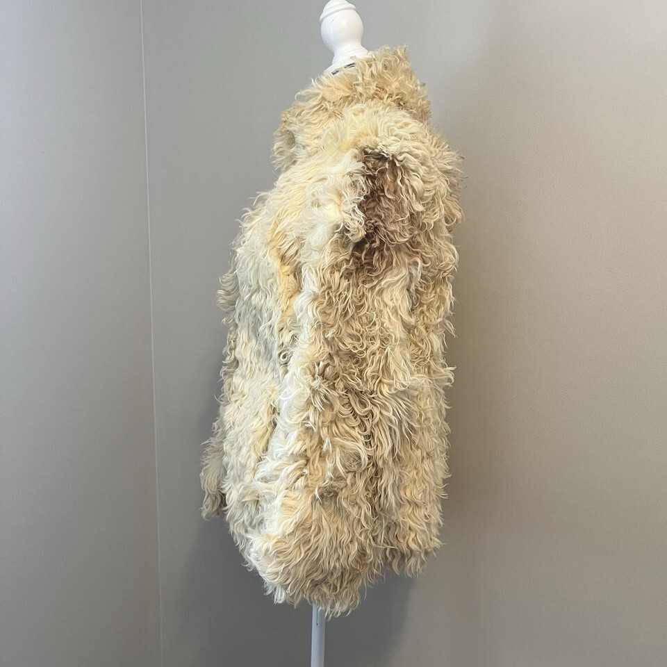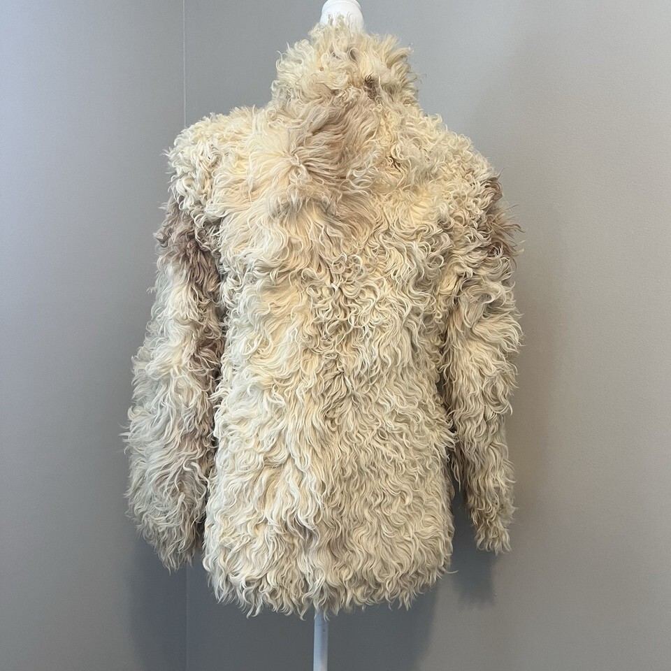 Vintage Mongolian Curly Lamb Sheep Fur Coat Holzman Furs Boho Womens Medium