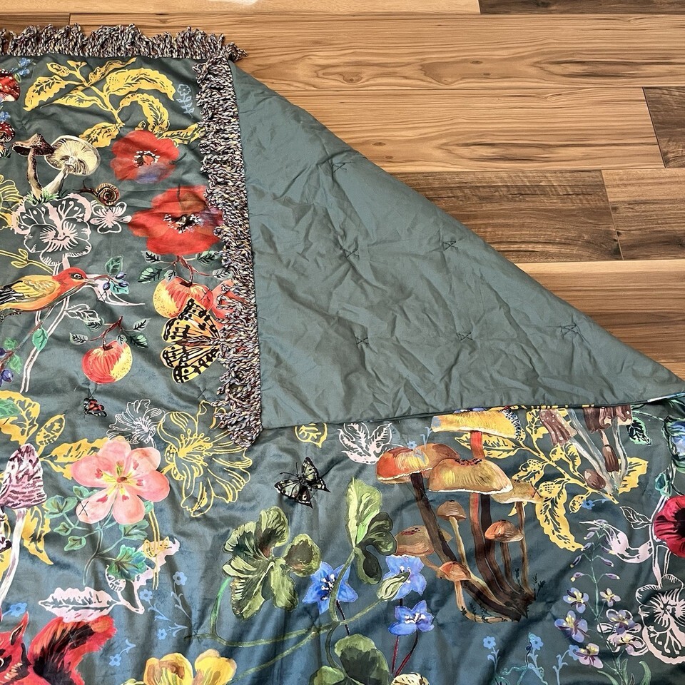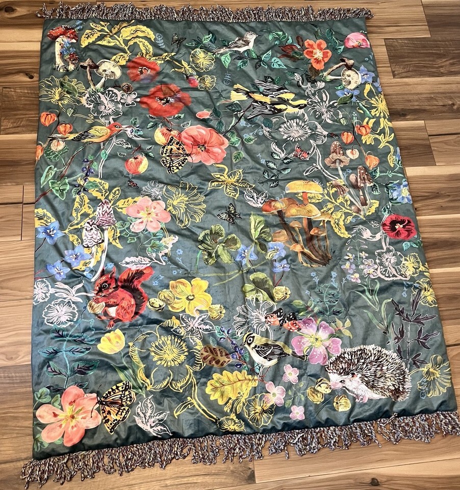 Anthropologie Nathalie Lete Velvet Throw Blanket Dark Turquoise New Without Tags