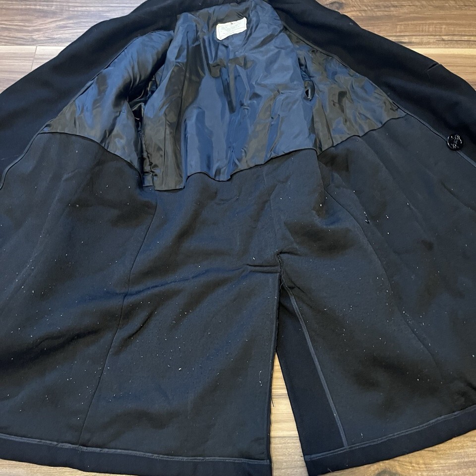 Vintage US Navy Men’s Military 100% Wool BLACK Pea Coat Size 42L Major Coat Co