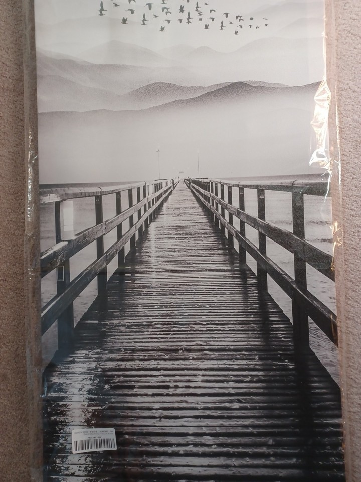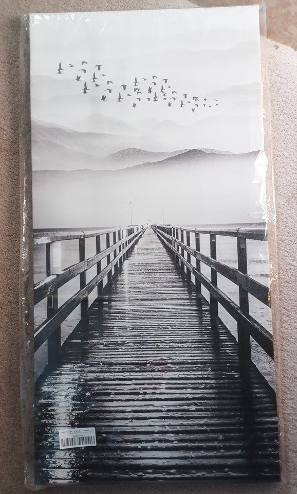 Flock of birds flying over a mountain lake wooden dock wall 16x32 art print NEW