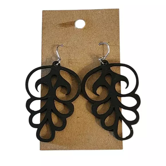Black Leaf Swirl Wood Drop Earrings and 49 similar items
