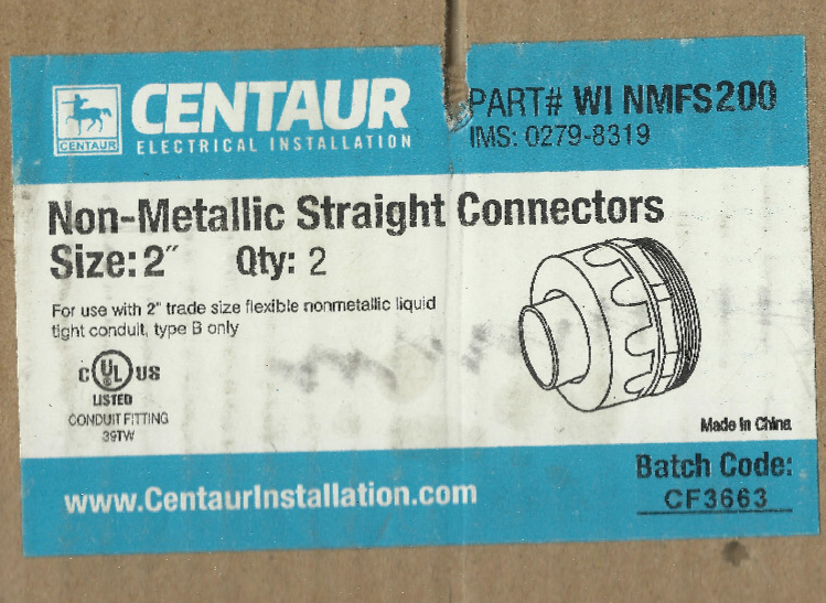 2 count Centaur WI NMFS200 Liquidtight 2" Straight Connector 2 inch Non Metallic