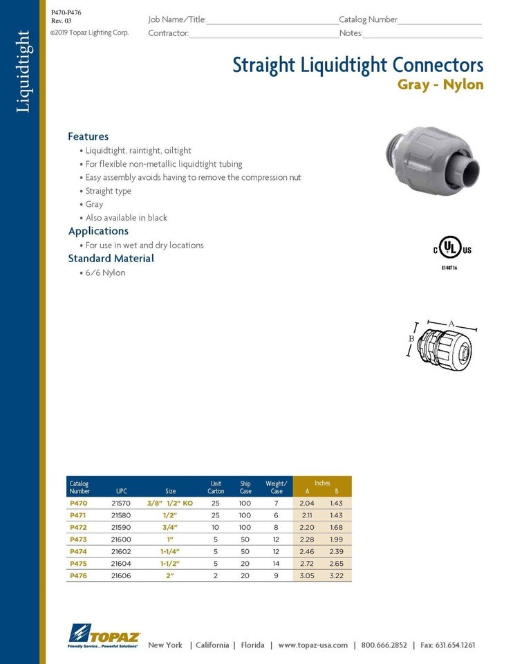 2 Liquid type 2" Straight Connector 2 inch Non Metallic Grey Nylon TOPAZ P476