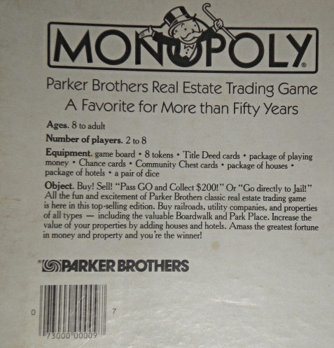 Includes game board, banker's tray, Chance Community Chest cards, deeds, tokens, houses hotels, dice, and instructions.