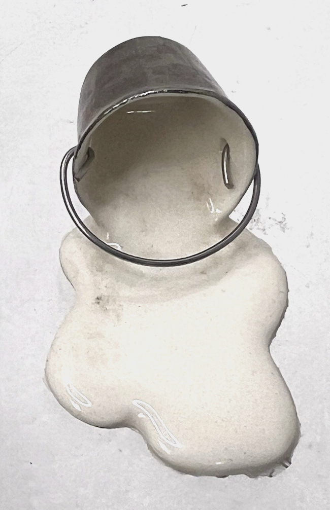 Hagen Renaker Spilled Milk Silver Bucket w Handle 1 3/4 x 1 Inch In Great Shape