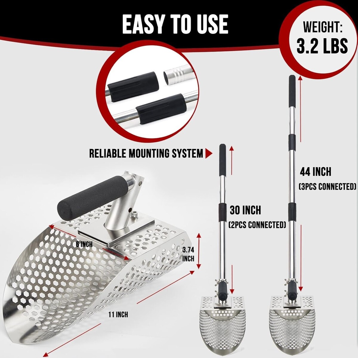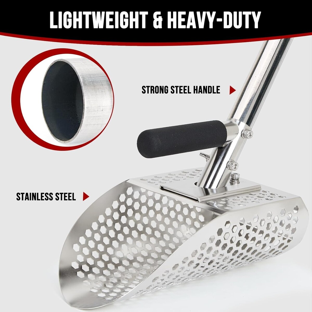 Adventure seekers and treasure hunters, elevate your treasure-hunting experience with our Lightweight Stainless Steel Metal Detecting Scoop. Whether sifting through sand at the beach or searching underwater, this exceptional scoop is engineered for performance, durability, and efficiency.